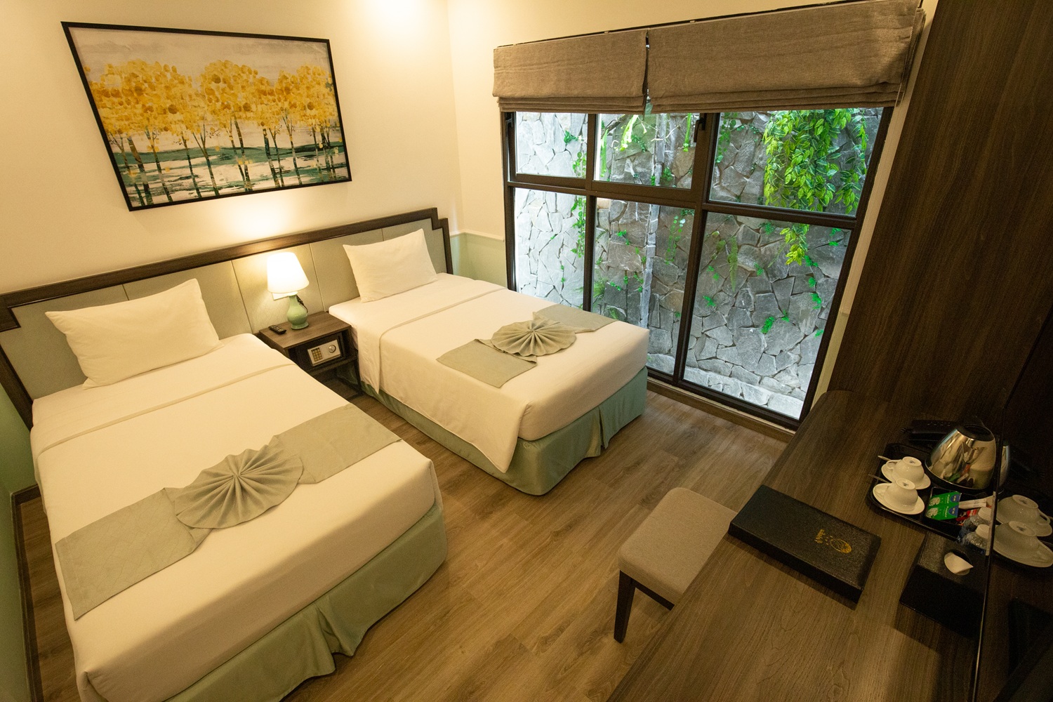 Room systems are designed in Western architectural style with harmonious colour schemes. Our rooms are equipped with 02 single beds.